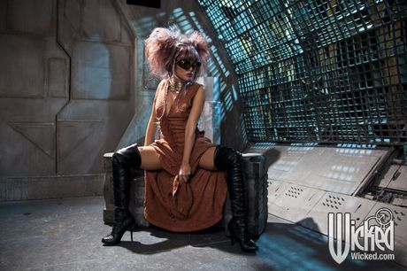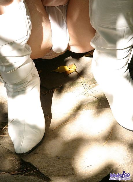 Jules Jordan: Seductive japanese bombshell London Keyes exhibiting big knockers and bald pussy outdoor